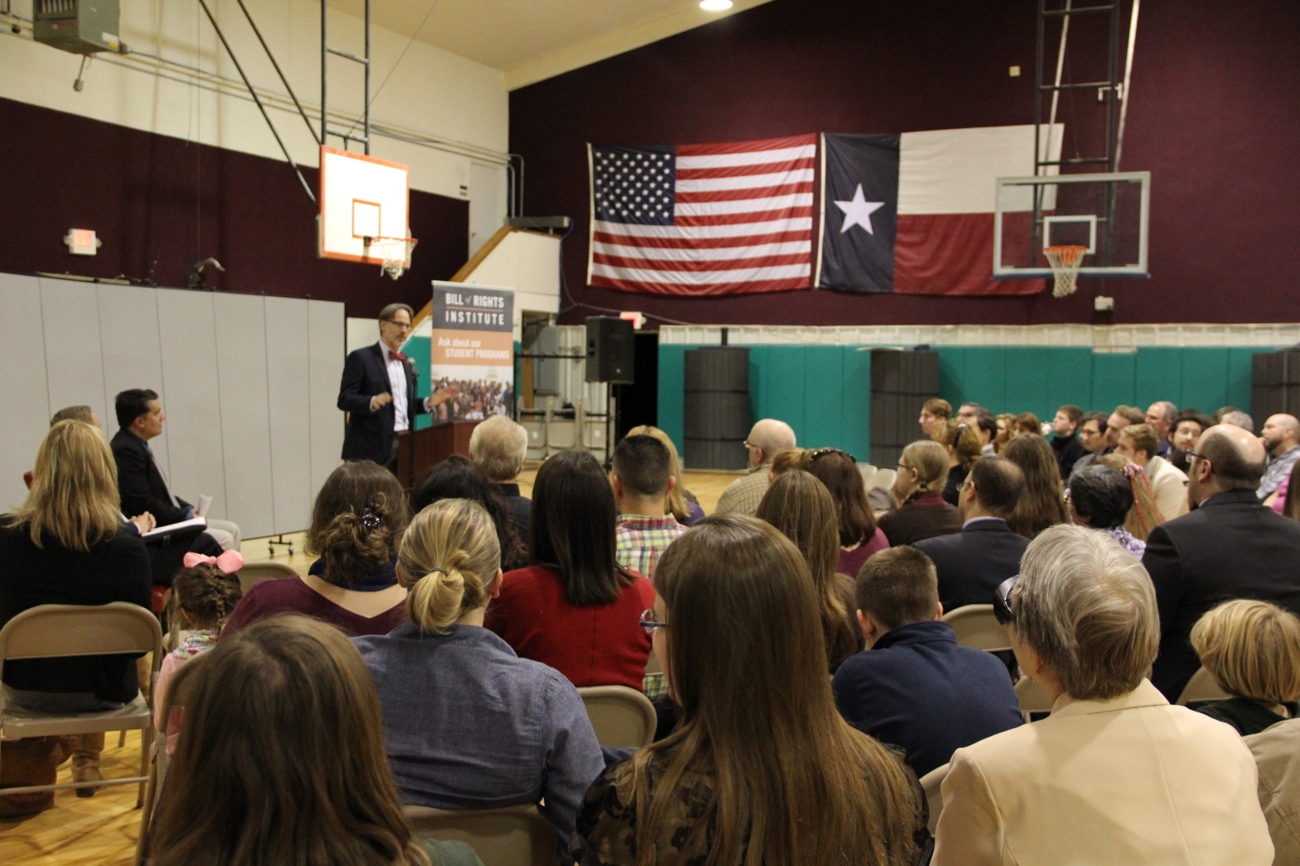 Two-hundred members of the school and local community joined Dr. David Bobb the president of the Bill of Rights Institute, Dr. Nathan Schlueter from Hillsdale College at the colloquium. The Scholars both spoke about the founders’ understanding of the relationship between morality, religion and self-government and how it is often understood today.